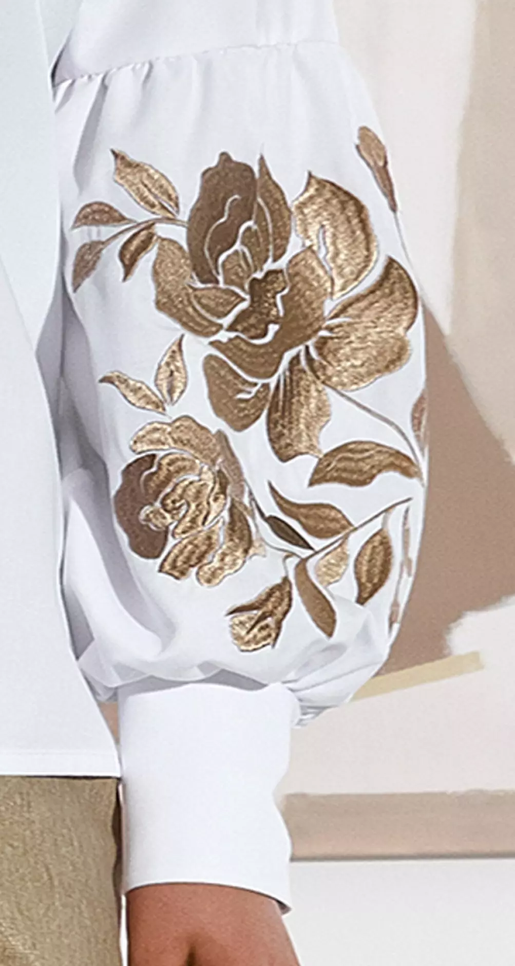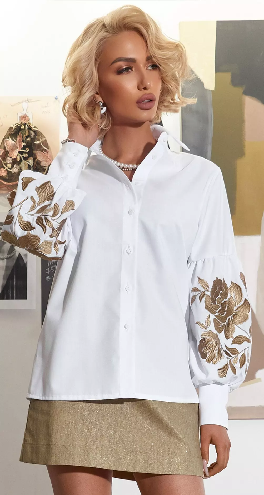 Головна Жінкам Сучасний вишитий одяг Біла блуза з вишивкою на рукавах