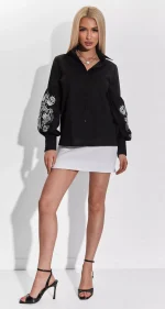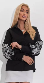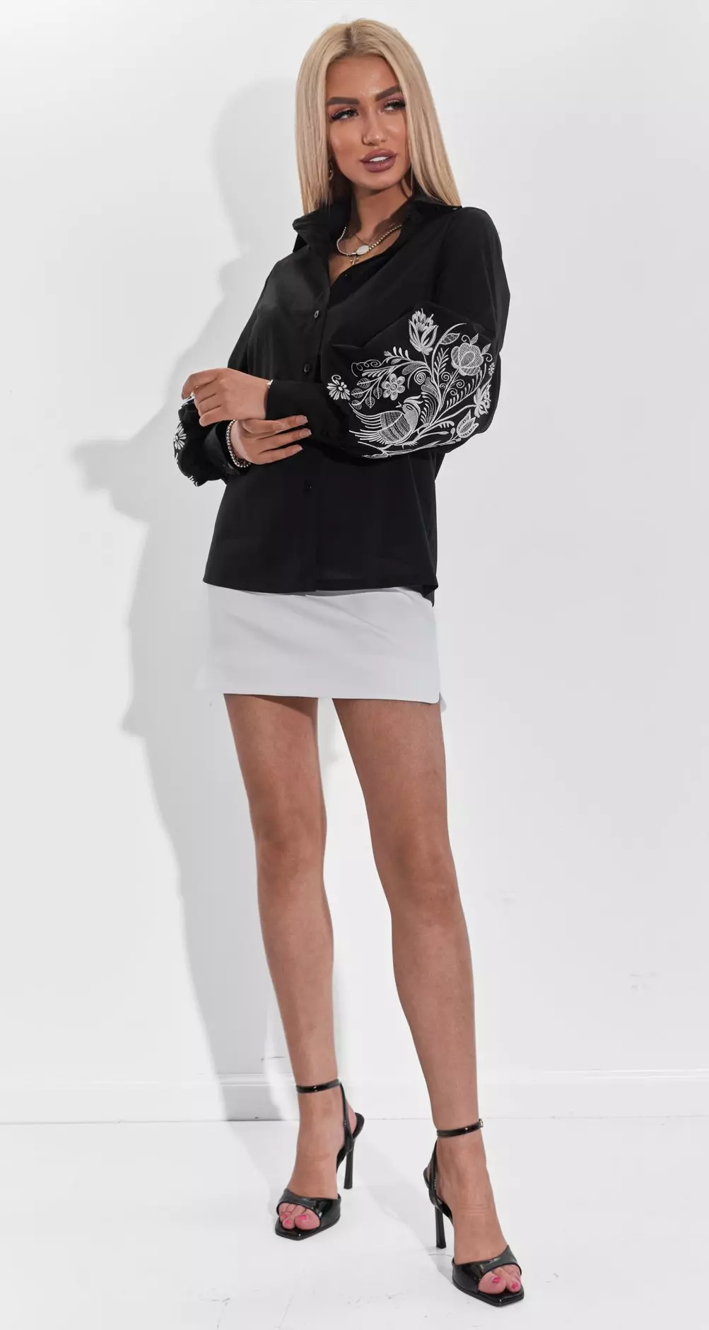 Головна Жінкам Сучасний вишитий одяг Чорна блуза з білою вишивкою