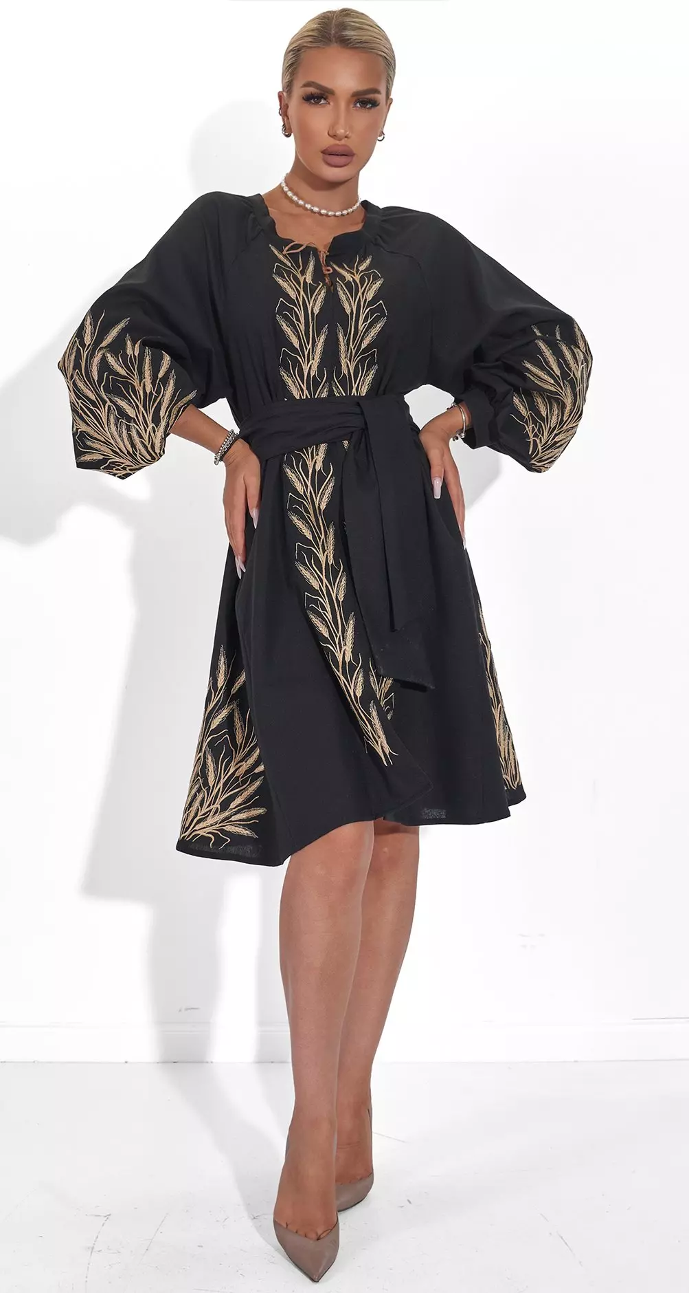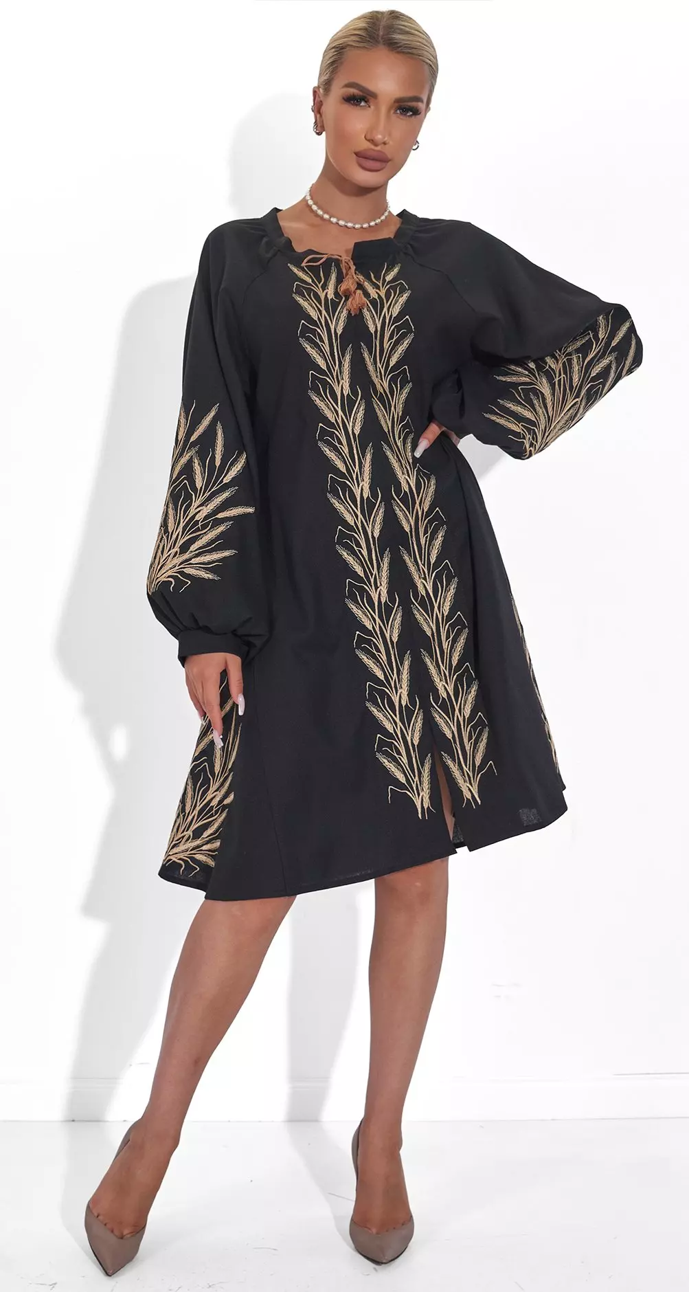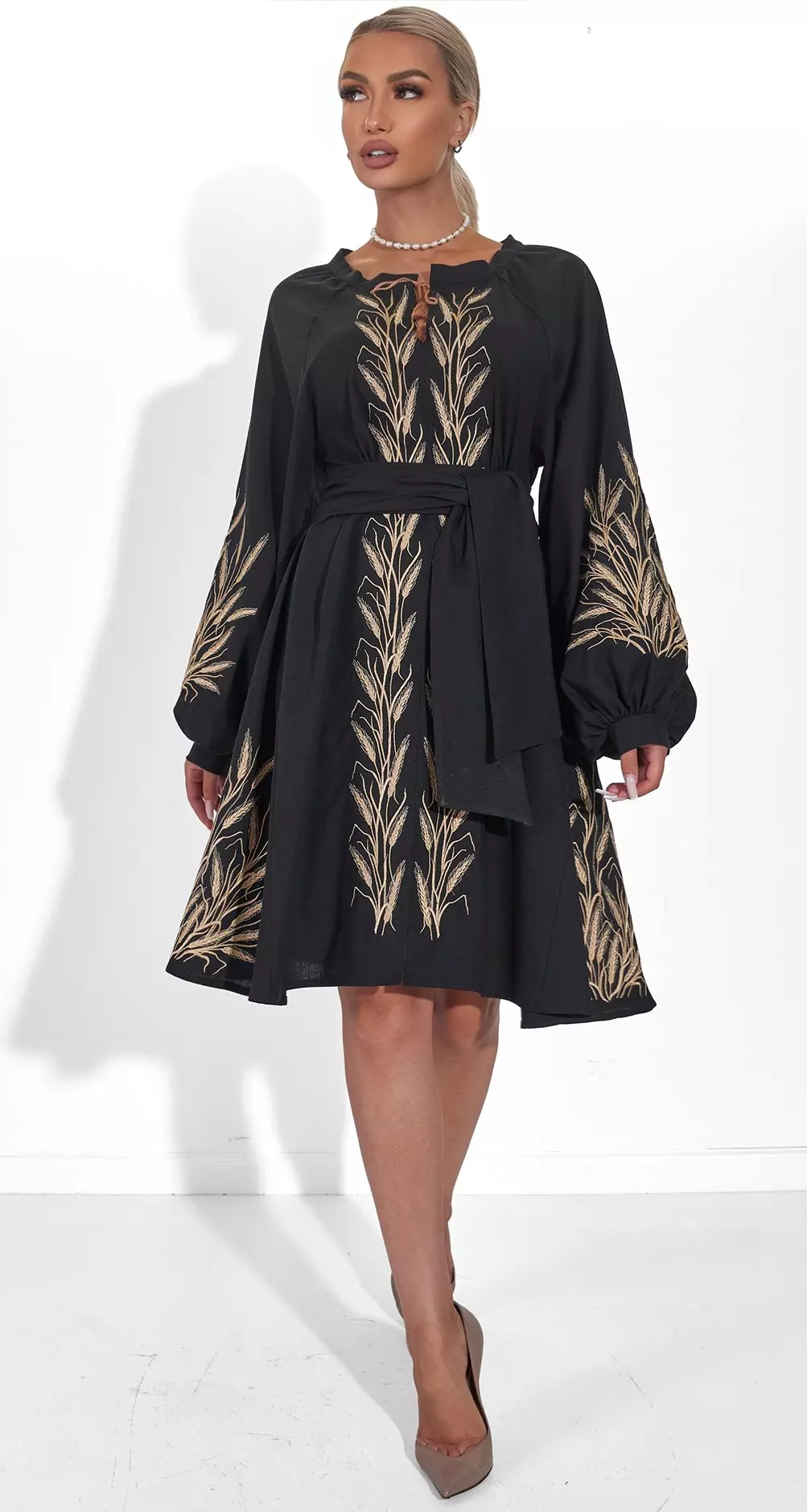 Вишита сукня Колос чорна