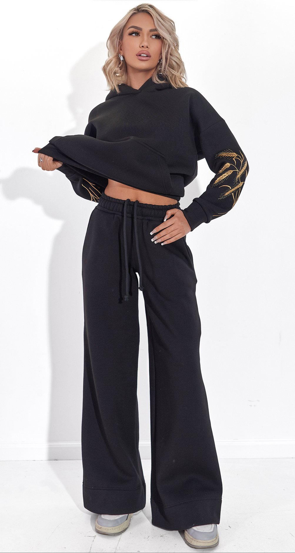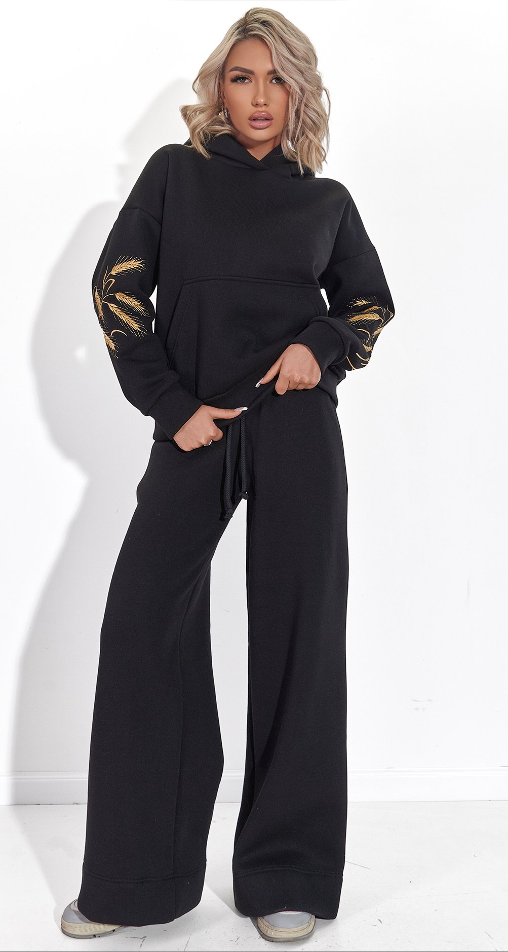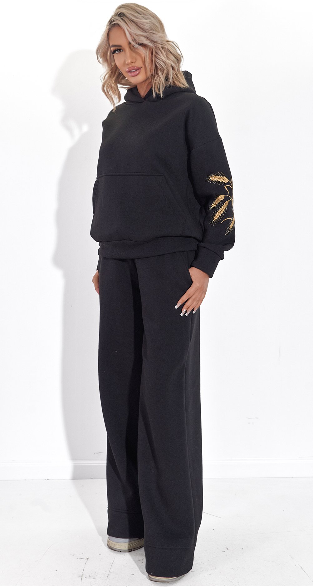 Вишитий теплий костюм Колосся чорний