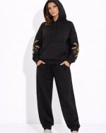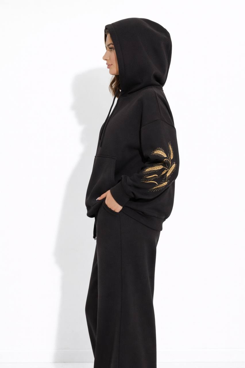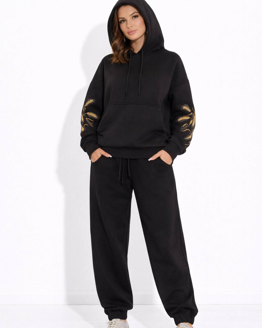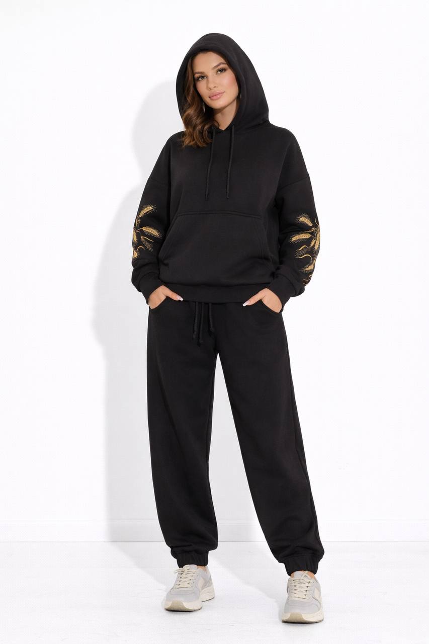 Вишитий теплий костюм Колосся чорний(штани джогери)