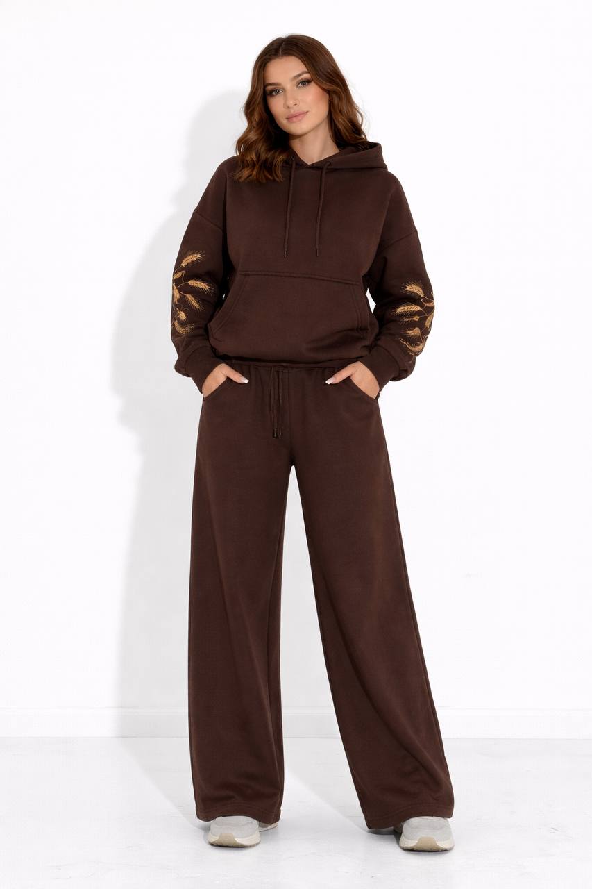 Головна Інше Худі, костюми з вишивкою Вишитий теплий костюм Колосся шоколадний