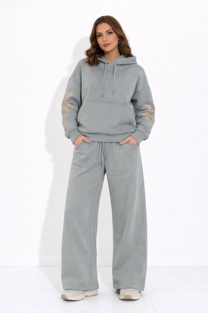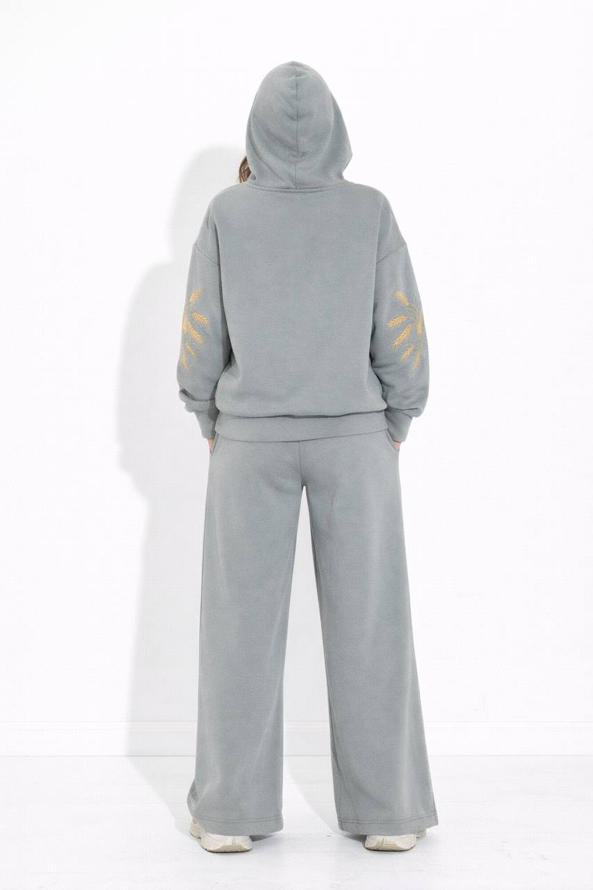 Вишитий теплий костюм Колосся сірий