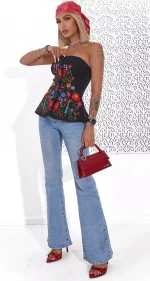 Вишитий жіночий корсет квітковий чорний